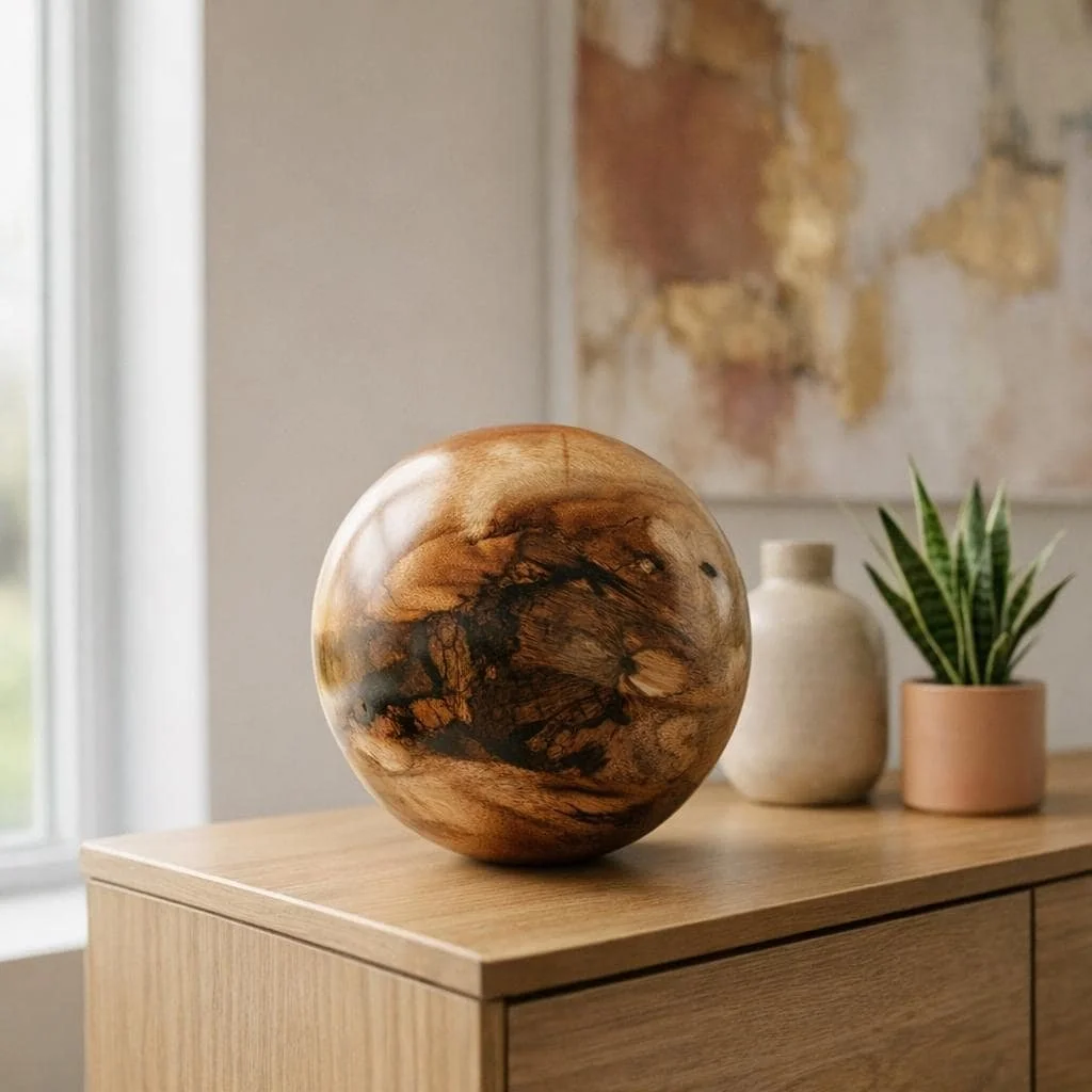 Apfelholz Kugel • Handgedrechseltes Unikat • Natur Deko Objekt aus Österreich • Massivholz Skulptur • Nachhaltiges Holzkunstwerk
