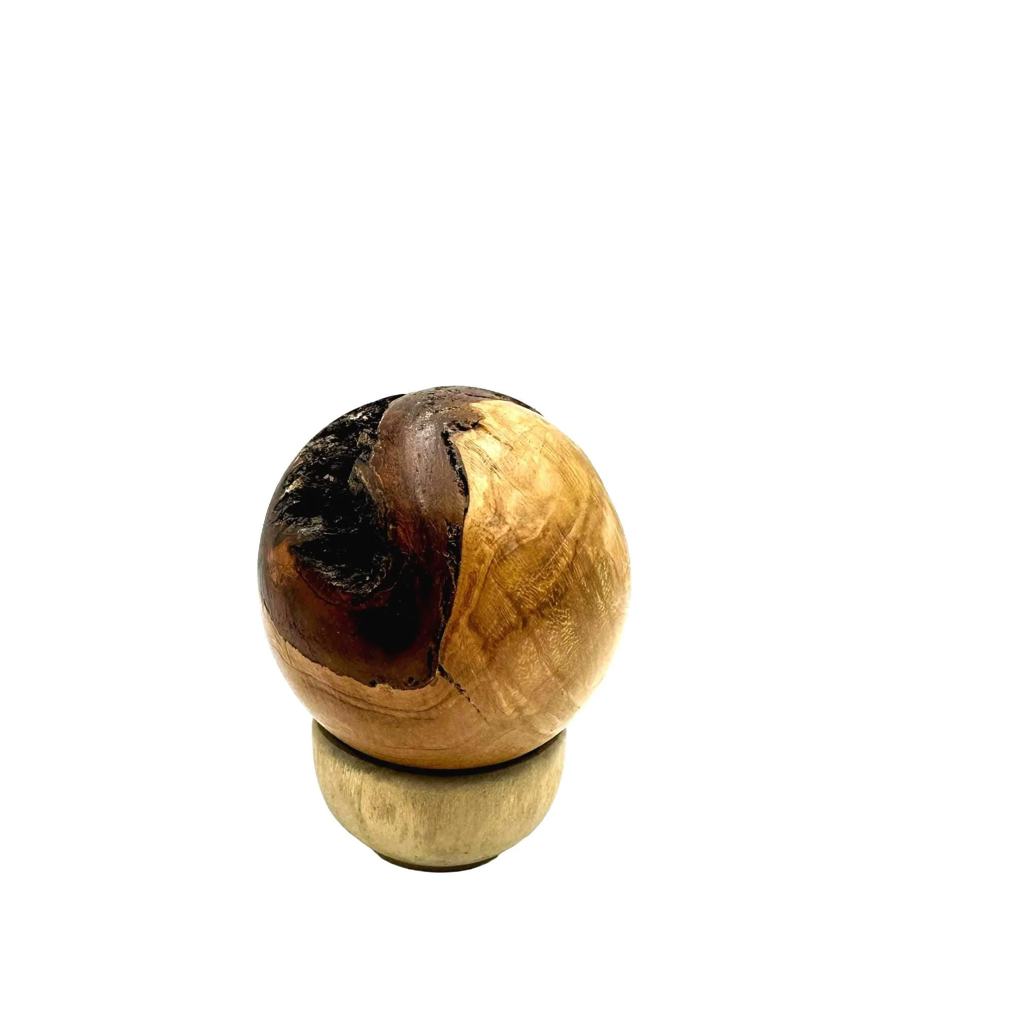 Handgedrechselte Kugel aus heimischem Apfelholz – jedes Detail einzigartig, spürbar echt und vollständig in Oberösterreich gefertigt.